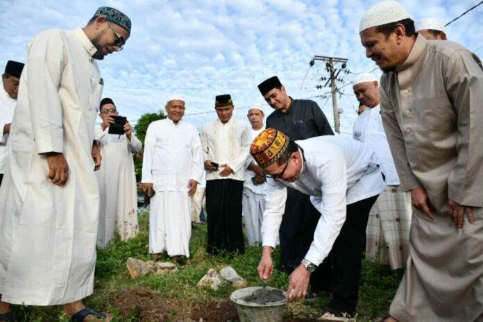 Analisaaceh.com, Banda Aceh | Penjabat (Pj) Wali Kota Banda Aceh Bakri, Siddiq didamping Asisten II Bidang Perekonomian dan Pembangunan Jalaluddin dan pengurus jamaah subuh BBC melakukan peletakkan batu pertama pembangunan rumah untuk warga kurang mampu Fakhrurrazi di Gampong Batoh, Kecamatan Lueng Bata, Minggu (14/8/2022).