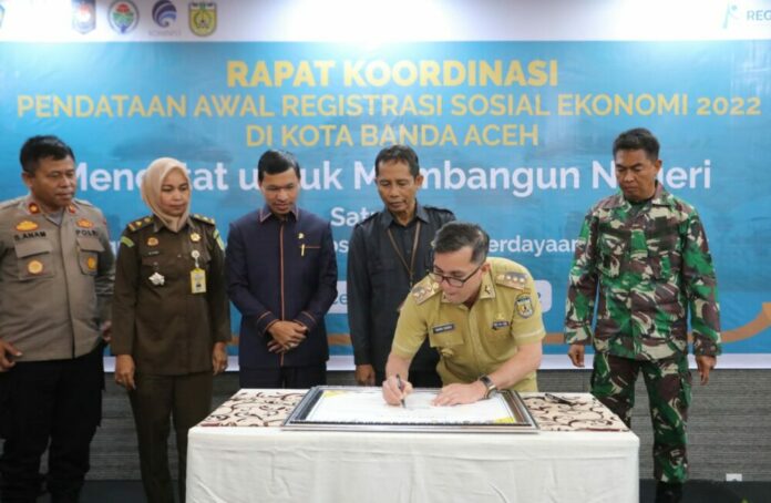 Analisaaceh.com, Banda Aceh | Penjabat Wali Kota Banda Aceh Bakri Siddiq membuka secara resmi Rapat Koordinasi Pendataan Awal Registrasi Sosial Ekonomi (Regsosek) 2022 yang digelar Badan Pusat Statistik (BPS) Banda Aceh di Hotel Kyriad Muraya, Selasa, 27 September 2022