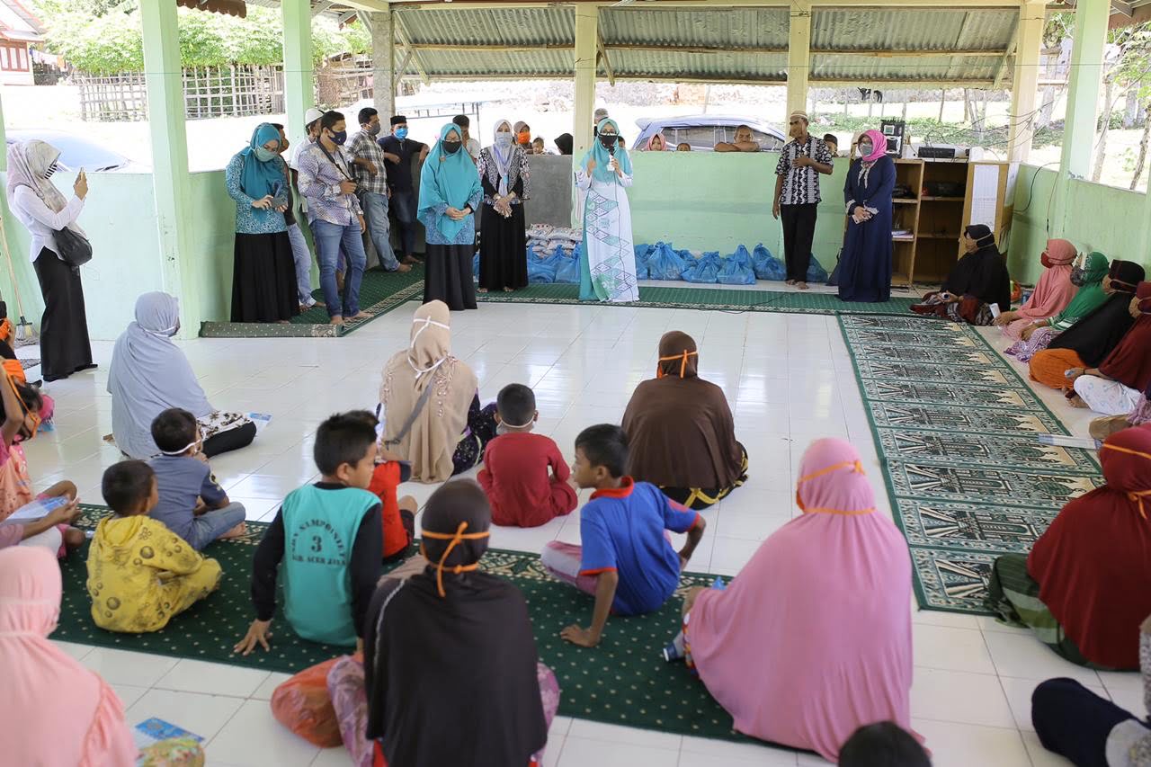 Analisaaceh.com, Aceh Besar | PKK Aceh menyalurkan bantuan bagi masyarakat kurang mampu yang terdampak penyebaran covid-19, di Komplek Indrapatra Gampong Ladong dan masyarakat Gampong Lamreh Krueng Raya, Aceh Besar. Bantuan tersebut diserahkan langsung Wakil Ketua PKK Aceh, Dyah Erti Idawati, Rabu (29/04/2020).