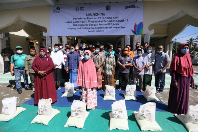 Analisaaceh.com, Suka Makmue | PT PLN (Persero) Unit Induk Wilayah (UIW) Aceh bekerjasama dengan Forum Pengurangan Risiko Bencana (Forum PRB) Aceh menyalurkan bantuan bahan pangan sebanyak 605 paket untuk guru ngaji, tenaga kesehatan bakti, dan kelompok masyarakat lainnya yang terimbas Covid-19.