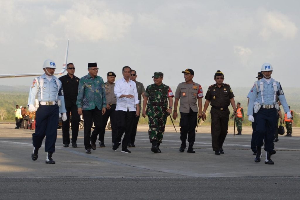 Presiden Republik Indonesia, Ir. Joko Widodo dan rombongan bersama Plt. Gubernur Aceh, Ir. Nova Iriansyah MT serta Forkopimda saat ketibaan di Bandara Sultan Iskandar Muda, Aceh Besar, Jum'at, 21/02/2020