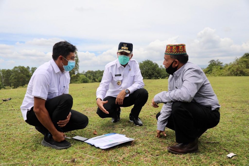 Plt Gubernur Aceh, Nova Iriansyah, bersama Ketua Harian KONI Aceh, Kamaruddin Abubakar (Abu Razak), meninjau lokasi pembangunan stadion utama pelaksanaan PON XXI Aceh-Sumut, di Kuta Malaka, Aceh Besar, Rabu, 30/9/2020