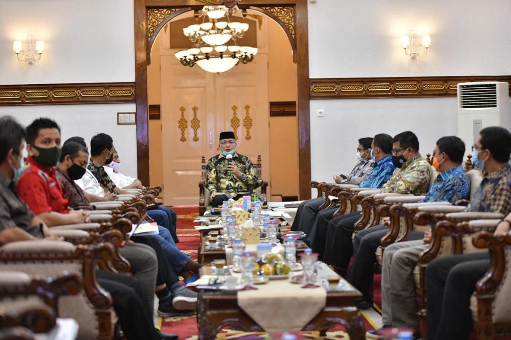 Analisaaceh.com, Banda Aceh | Pelaksana Tugas Gubernur Aceh, Nova Iriansyah memimpin rapat kesiapan gelaran Pekan Olahraga Nasional (PON) ke XXI bersama pimpinan KONI Aceh, di Pendopo Gubernur, Kamis (15/10/2020).