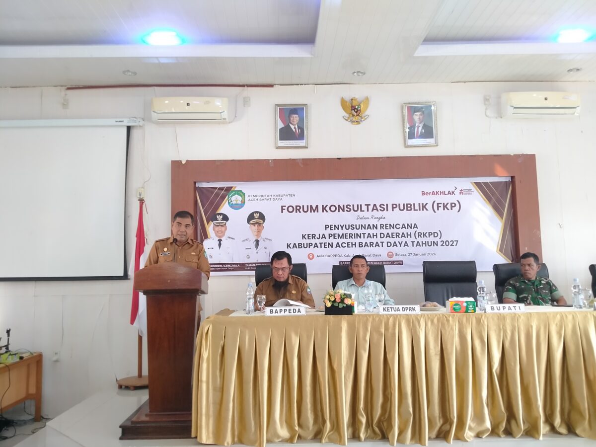 Analisaaceh.com, Blangpidie | Badan Perencanaan Pembangunan Daerah (Bappeda) Kabupaten Aceh Barat Daya (Abdya) menyelenggarakan Forum Konsultasi Publik (FKP) Rancangan Awal Rencana Kerja Pemerintah Daerah (RKPD) tahun 2027. Kegiatan tersebut berlangsung di Aula Bappeda setempat, Selasa (27/1/2026).
