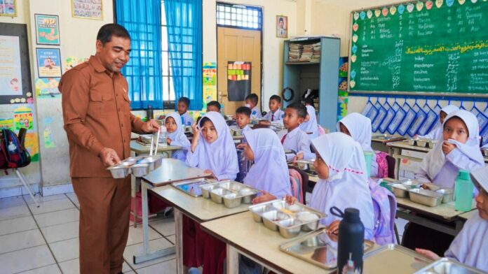Analisaaceh.com, Blangpidie | Pemerintah Kabupaten (Pemkab) Aceh Barat Daya (Abdya) meninjau pelaksanaan program makanan bergizi gratis (MBG) untuk 200 siswa di Sekolah Dasar (SD) Negeri Tunas Bangsa kabupaten setempat, Senin (13/10/2025). Peninjauan ini memastikan progam strategis nasional yang diinisiasi Presiden Prabowo Subianto tersebut berjalan optimal dan memberikan manfaat nyata dalam peningkatan gizi bagi peserta didik.