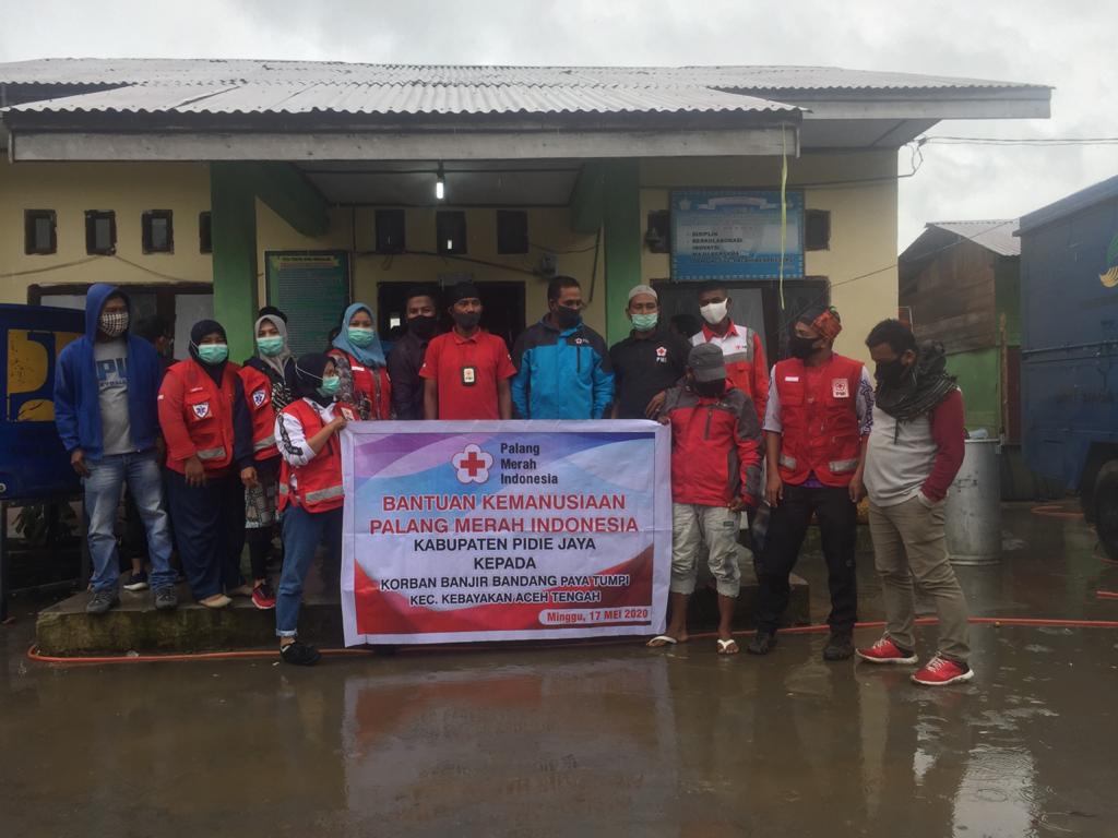 Analisaaceh.com,Takengon | Palang Merah Indonesia (PMI) Cabang Pidie Jaya mendistribusikan bantuan untuk masyarakat korban Banjir bandang di posko utama bencana SD 5 Kebayakan Desa Paya Tumpi Kebayakan Aceh Tengah, (17/05/2020).