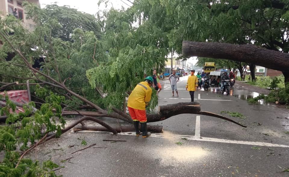 Farhan menjelaskan, petugas mengerahkan mesin pemotong kayu (chainsaw) dengan personel 6 orang untuk melakukan pemotongan dan pembersihan pohon yang tumbang tersebut.