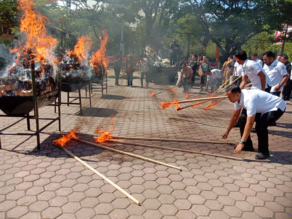 Adapun pemusnahan sabu tersebut dengan cara melarutkannya dengan bahan kimia lainnya yang telah didihkan sehingga tidak bisa digunakan lagi, sementara ganja dilakukan dengan cara dibakar.