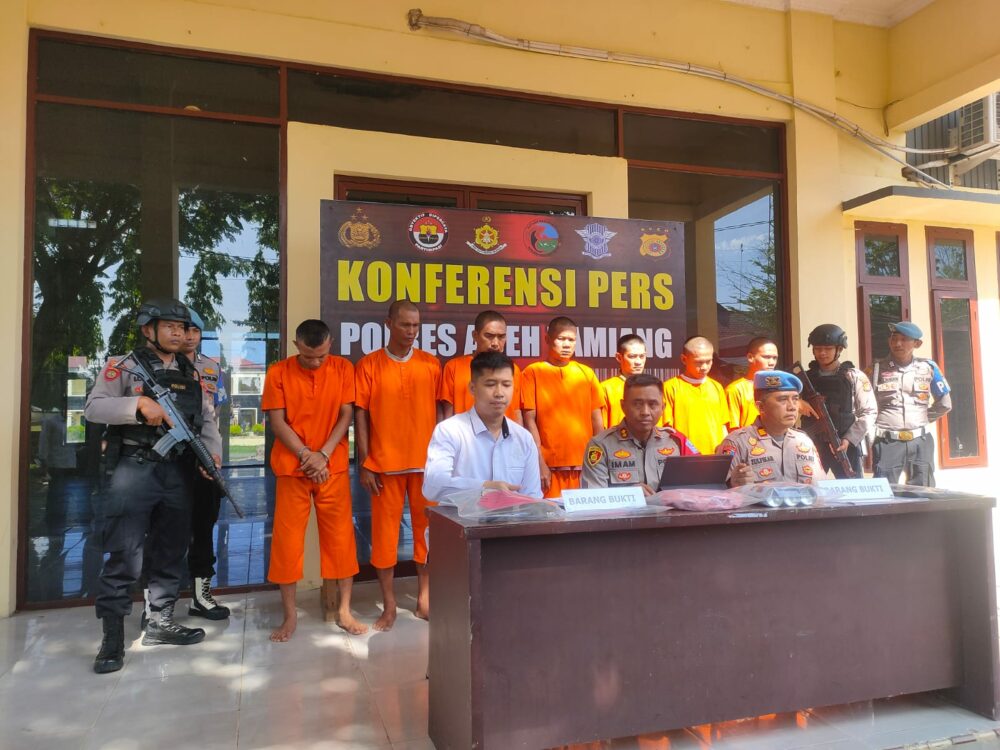 Analisaaceh.com, Kuala Simpang | Satuan Reserse Kriminal (Satreskrim) Polres Aceh Tamiang mengamankan tujuh orang tersangka pelaku tindak pidana pencurian sepeda motor (curanmor).