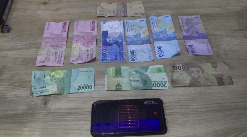 Barang bukti yang diamankan petugas di lokasi diantaranya satu unit handphone merk Oppo warna hitam milik pelaku yang berisi satu akun resmi chip higgs domino, satu akun resmi penjualan chip yang berisi 15 B yang disimpan dalam satu akun id penjual yang telah terjual sebanyak 10 B dan sisa di Akun 5 B, serta uang tunai hasil penjualan chip sebanyak Rp410.000.