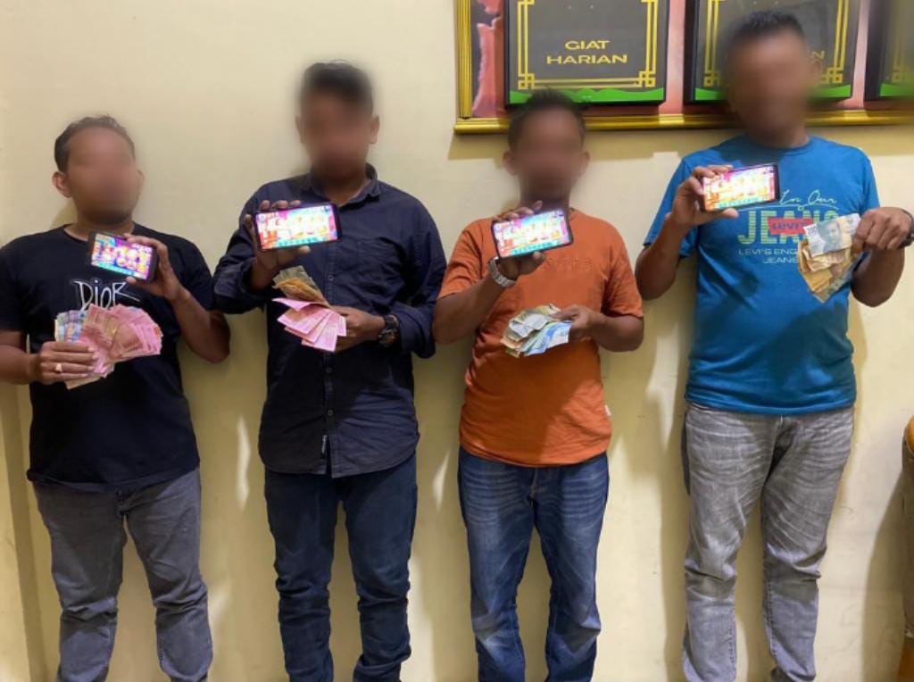 Empat pelaku tindak pidana maisir usai diamankan Polisi di Bireuen (Foto: Ist)