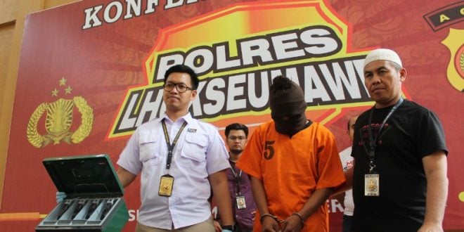 “Dari hasil penyelidikan, akhirnya kita menyimpulkan kalau pelaku pencurian mengerucut kepada tersangka AS. Hal ini terungkap setelah melihat fakta dan olah TKP kejadian serta keterangan sejumlah saksi. Tersangka sempat melarikan diri ke daerah Langkat Sumatra Utara hingga akhirnya pelariannya terhenti dan berhasil ditangkap di kawasan Kota Langsa, dimana sebelumnya tersangka berkeinginan kembali ke Lhokseumawe,” Jelas AKP Indra kepada wartawan dalam konferensi pers, Minggu (30/6/2019) di Mapolres Lhokseumawe.