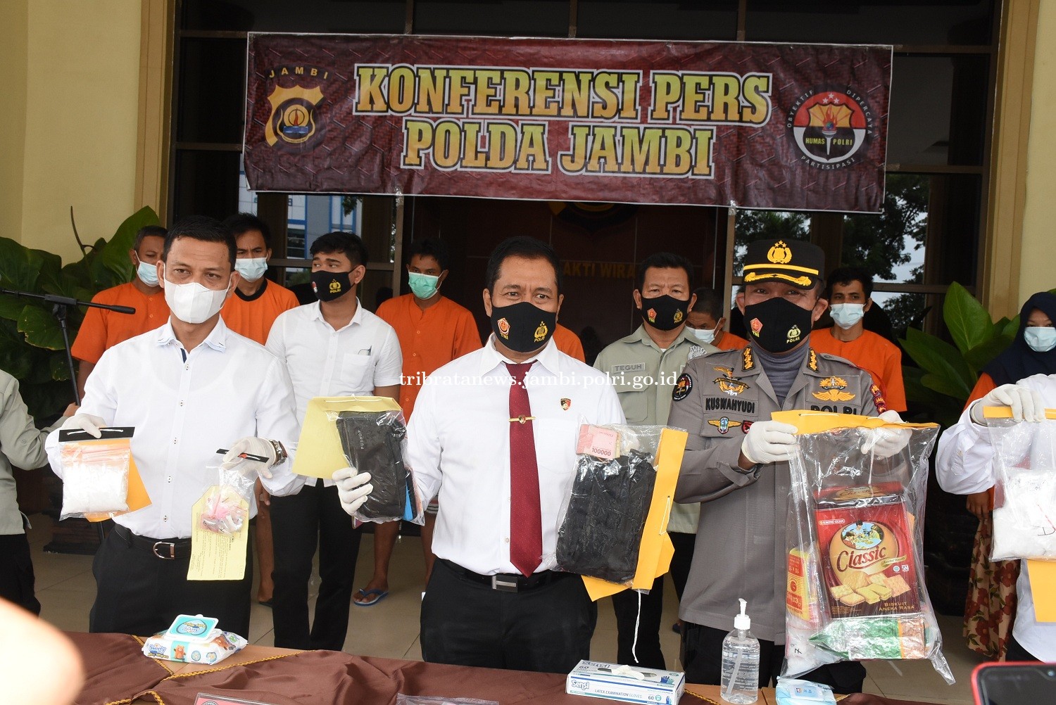 Hal ini disampaikan Diresnarkoba Polda Jambi Kombes Pol Dewa Putu Gede didampingi Kabid Humas, Kombes Pol Kuswahyudi Tresnadi saat konferensi pers ungkap kasus Ditresnarkoba Polda Jambi.