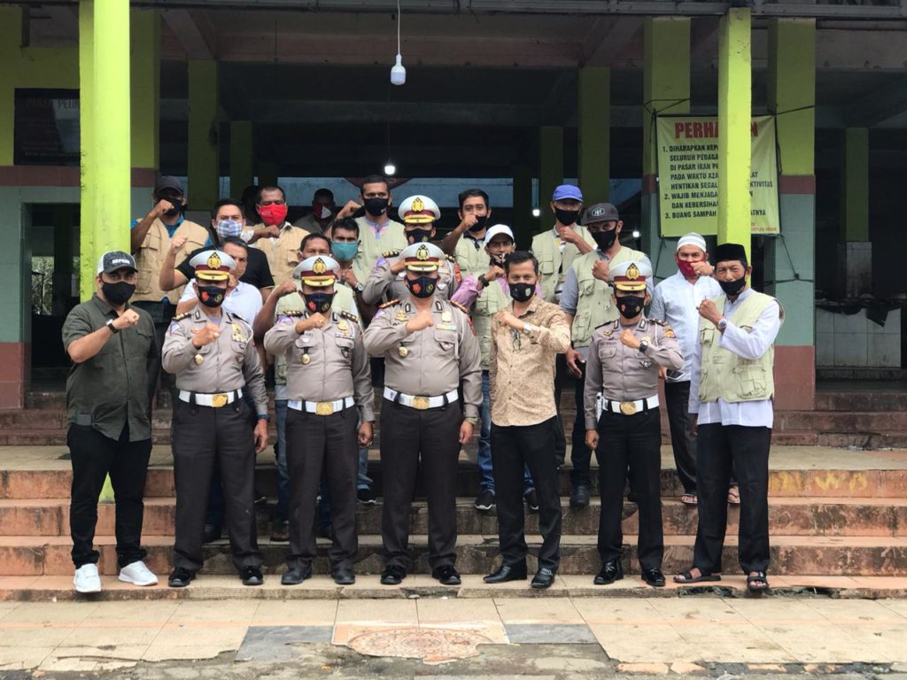 Atas inisiatif tersebut, hari ini, Jumat (18/9/2020), Dirlantas Polda Aceh, Dicky Sondany melantik 10 orang penegak disiplin menggunakan masker di Pasar Peunayong Banda Aceh.