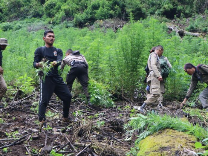 “Tim gabungan berangkat dari kaki gunung pedesaan Agusen pada hari Kamis pagi menuju ke lokasi ladang ganja di ketinggian 2090 MDPL dengan berjalan kaki,” kata Kapolres, Jum’at (2/9).