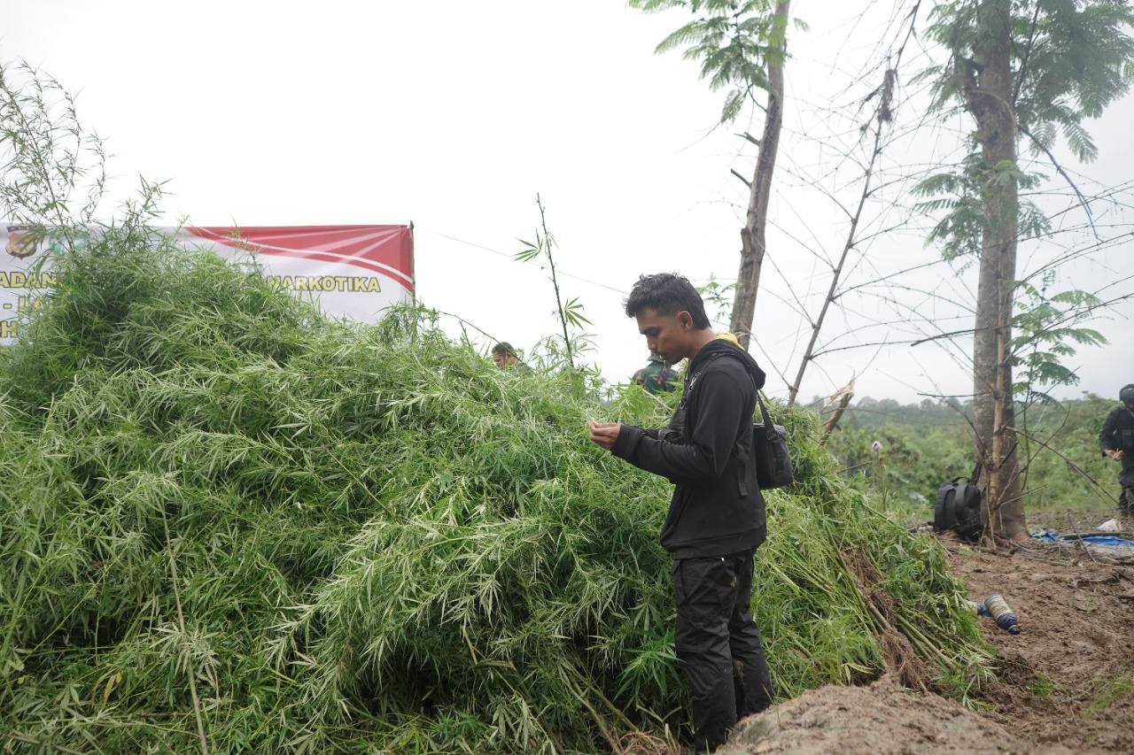 Alhasil, Personel Gabungan Ditresnarkoba Polda Lampung, Ditresnarkoba Polda Aceh, Polres Lhokseumawe, Detasemen B Brimob, Kanwil Bea Cukai, dan Kodim 0103 Aceh Utara menemukan 6,26 Hektar ladang ganja di Desa Lhok Drien, Kecamatan Sawang, Kabupaten Aceh Utara, Provinsi Aceh, Minggu, 27 Februari 2022.