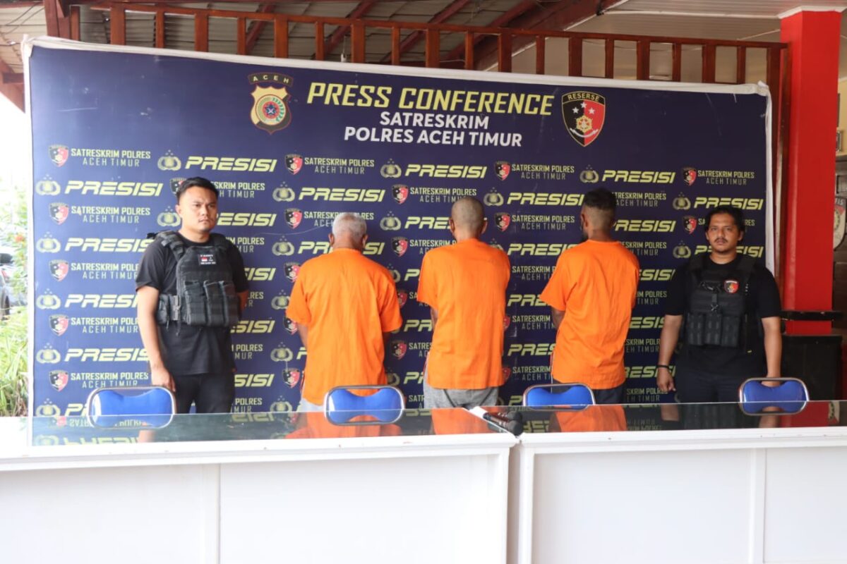 Kepala Satuan Reserse Kriminal (Satreskrim) Polres Aceh Timur, Iptu Adi Wahyu Nurhidayat, mengatakan ketiga pelaku berinisial IS (38) dan AY (64), warga Kabupaten Aceh Timur, serta MH (41), warga negara Myanmar.