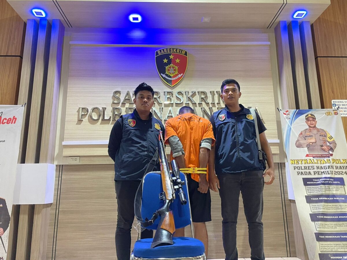 Analisaaceh.com, Suka Makmue | Satreskrim Polres Nagan Raya menangkap MS (53), terduga pelaku penembakan warga Gampong Padang Panyang, Heri Juliandi, menggunakan senapan angin.
