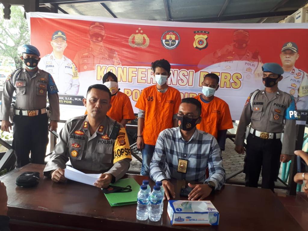 Tersangka IF ditangkap pada Selasa (13/10)  sekira pukul 20.00 WIB oleh tim Unit Opsnal Sat Reskrim di Terminal Terpadu Kota Sigli. Kemudian pada Rabu (14/10) pukul 15.00 WIB, tersangka IW dan DI berhasil dibekuk di daerah yang sama.