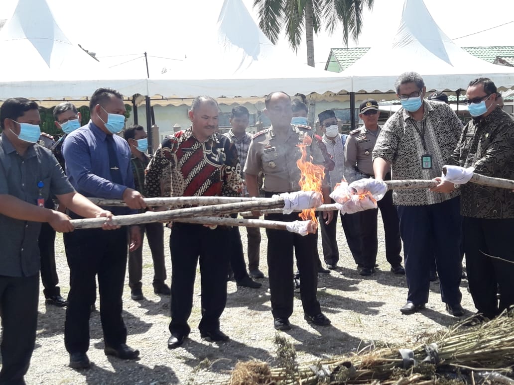 Analisaaceh.com, Tapaktuan | Polres Aceh Selatan memusnahkan barang bukti tidak pidana narkotika di Alun-alun depan kantor Bupati Aceh Selatan, Kamis (31/10/2019). Dipimpin langsung oleh Kapolres Aceh Selatan AKBP Dedy Sadsono, ST didampingi Kepala BNNK Aceh Selatan, BNN Aceh dan oraganisasi HMI.