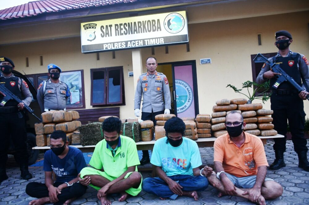 Analisaaceh.com, Idi | Satuan Reserse Narkoba (Satresnarkoba) Polres Aceh Timur meringkus empat pelaku tindak pidana penyalahgunaan narkotikan jenis ganja, yang merupakan hasil pengungkapan dari temuan ganja seberat 145 Kilogram di Gampong Leles Kecamatan Serbajadi.