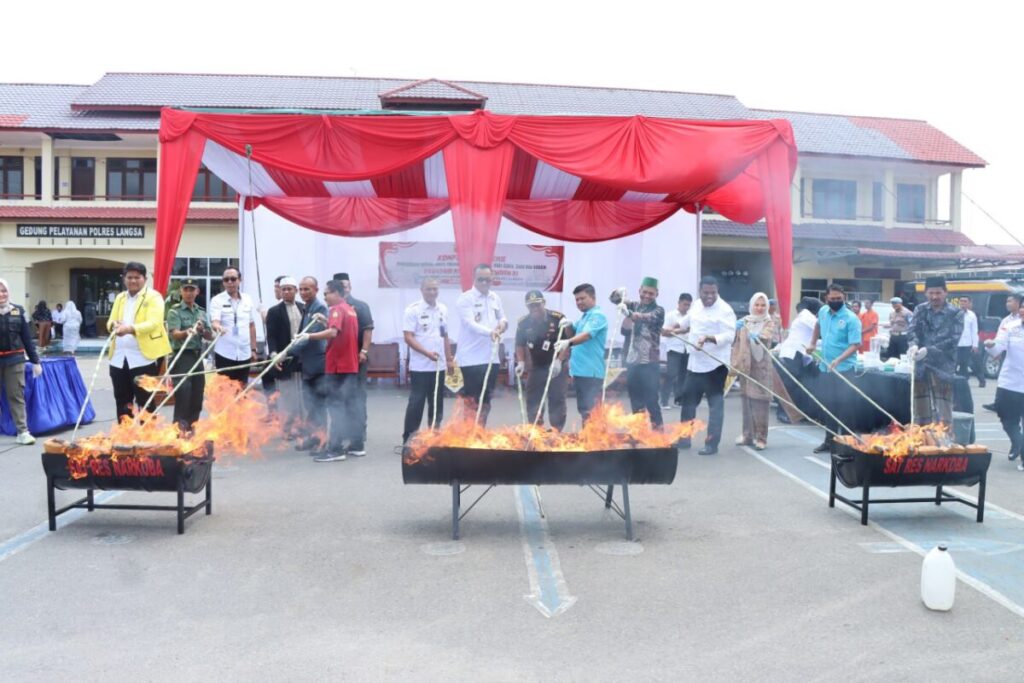 Pemusnahan barang bukti narkotika dengan berbagai jenis di Mapolres Langsa. Foto (ist).