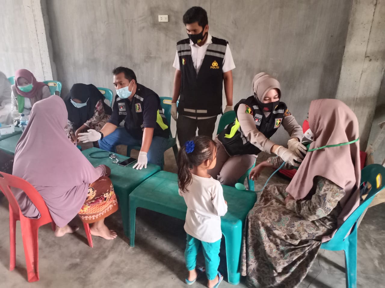Pengobatan dilakukan terhadap ratusan warga di Posko terpadu penanganan bencana Polres Lhokseumawe di Desa Pulo Klat, Kecamatan Samudera, Kabupaten Aceh Utara” selasa (8/12/2020).