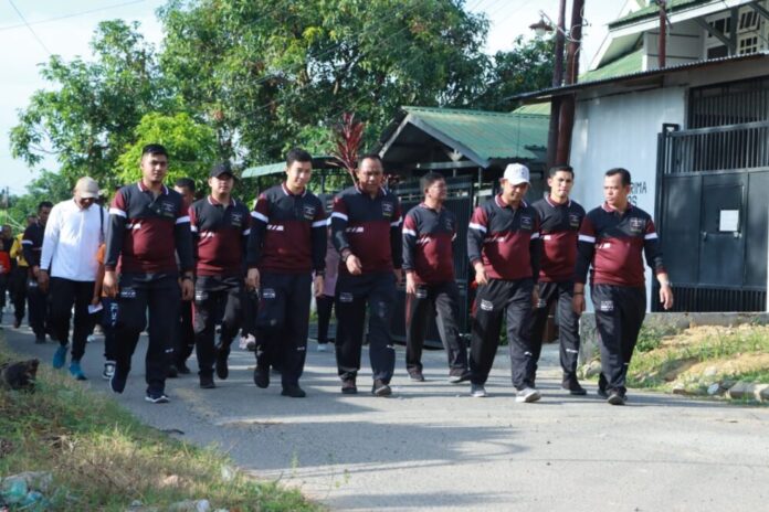 Analisaaceh.com, Lhokseumawe | Memperingati Hari Bhayangkara yang ke-77, Polres Lhokseumawe mengadakan kegiatan jalan santai dan senam. Kegiatan ini berlangsung pada Sabtu (24/6/2023) pagi di lapangan apel Satya Haprabu Mapolres Lhokseumawe.