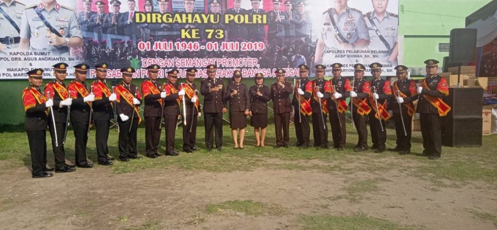 MEDAN – Dalam Rangka kegiatan syukuran HUT Bhayangkara Ke 73 dilaksanakan secara hikmad dan meriah di lapangan Pasar 1 Medan Marelan, Rabu siang (10/7/2019).