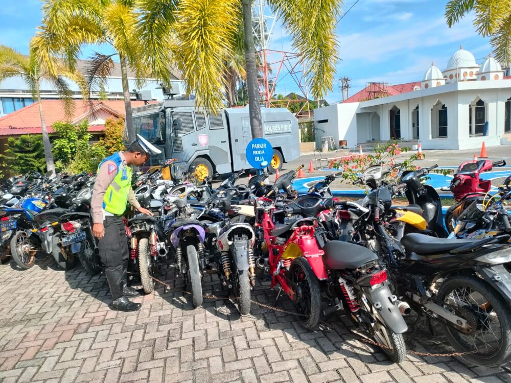 Analisaaceh.com, Sigli | Sat Lantas Polres Pidie mengamankan 56 unit sepeda motor (sepmor) berknalpot brong dan sebagian sepmor tanpa Tanda Nomor Kendaraan Bermotor (TNKB) dalam patroli di sejumlah kawasan di Pidie.