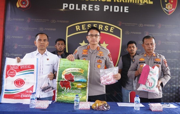 barang bukti yang ditunjukan ke awak media, foto: humas Polres Pidie.
