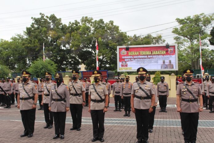 Analisaaceh.com, Banda Aceh | Kepolisian Resor Kota Banda Aceh menggelar upacara serah terima jabatan Kabagren, Kasatbinmas, Kapolsek Jaya Baru dan Kapolsek Darul Kamal yang dilaksanakan di Halaman Polresta Banda Aceh pada Kamis (19/8/2021).