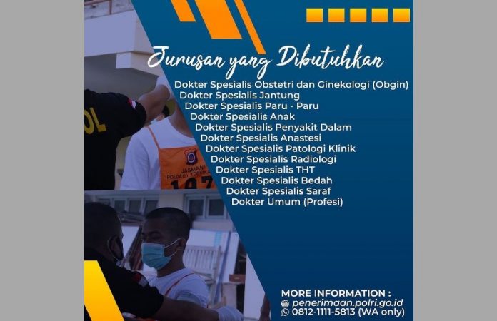 Analisaaceh.com | Kepolisian Negara Republik Indonesia (Polri) kembali membuka rekrutmen Sekolah Inspektur Polisi Sumber Sarjana (SIPSS) khusus Kedokteran T.A.2021.