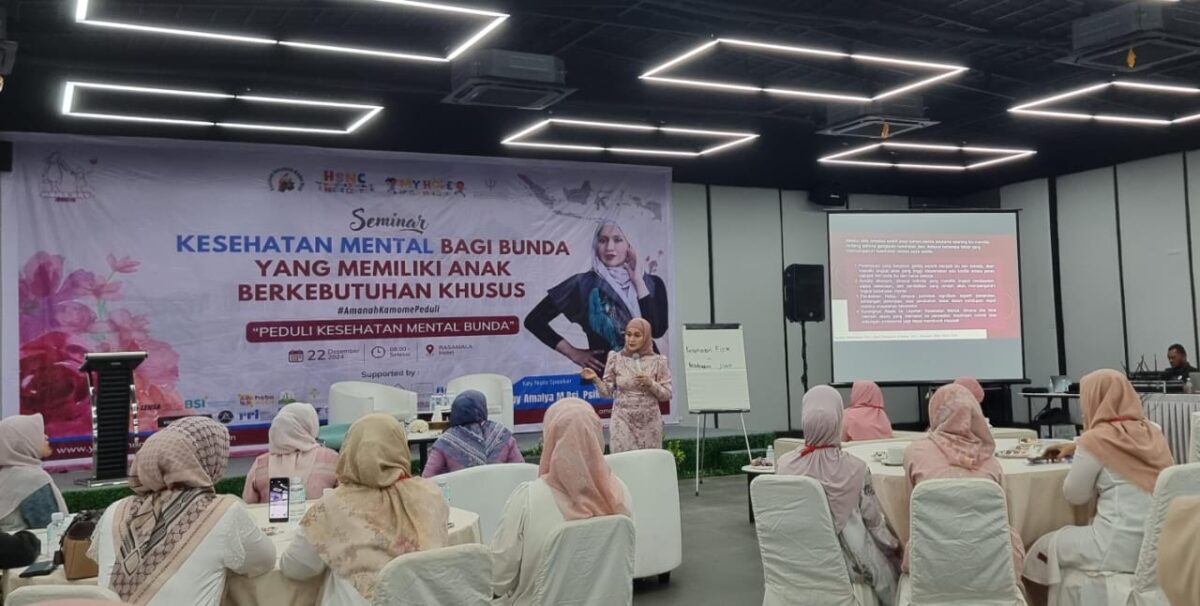 Hal ini disampaikan dalam seminar bertema “Peduli Kesehatan Mental Bunda yang Memiliki Anak Berkebutuhan Khusus.” Kegiatan ini diselenggarakan untuk memperingati Hari Ibu Nasional 2024, berlangsung di Keumala Hotel, Minggu (22/12/2024).