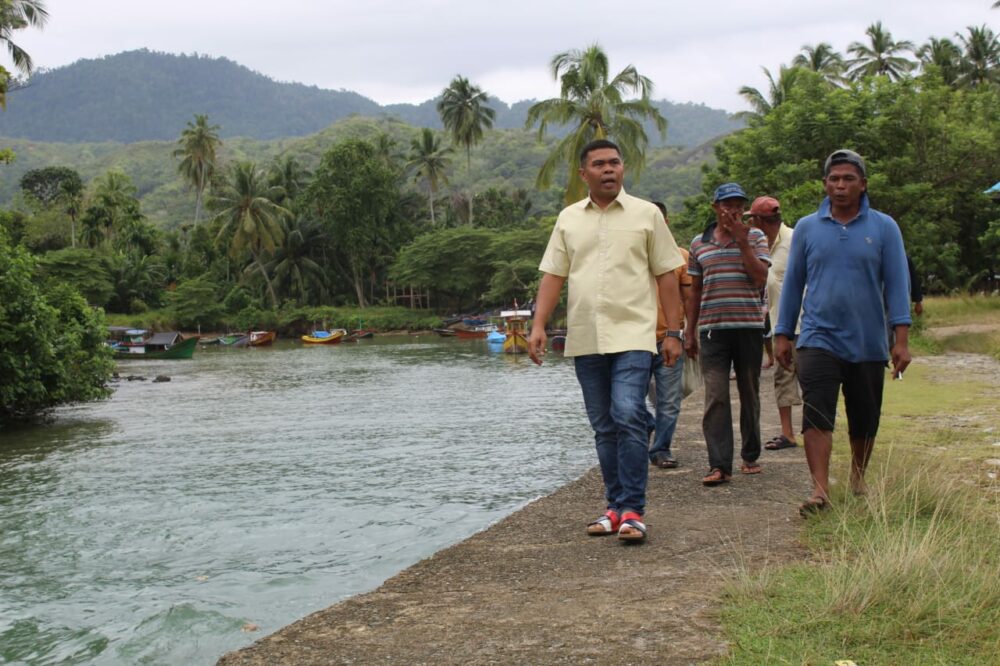 Anggota DPRA Hendri Yono, S.Sos., M.Si saat meninjau dermaga Pangkalan Pendaratan Ikan (PPI) Gunung Cut, Kecamatan Samadua, Kabupaten Aceh Selatan, Minggu (16/10) didampingi Panglima Laot dan nelayan setempat.