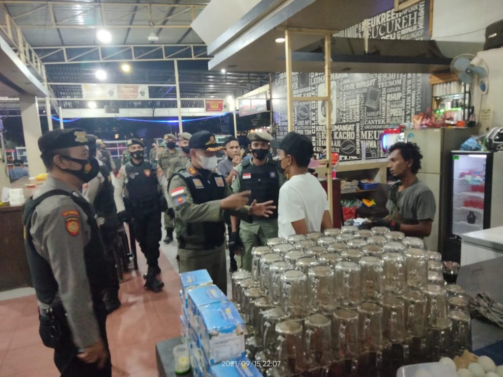 Tim gabungan saat menggelar operasi penerapan protokol kesehatan serta Pemberlakukan Pembatasan Kegiatan Masyarakat (PPKM) di warung kopi.