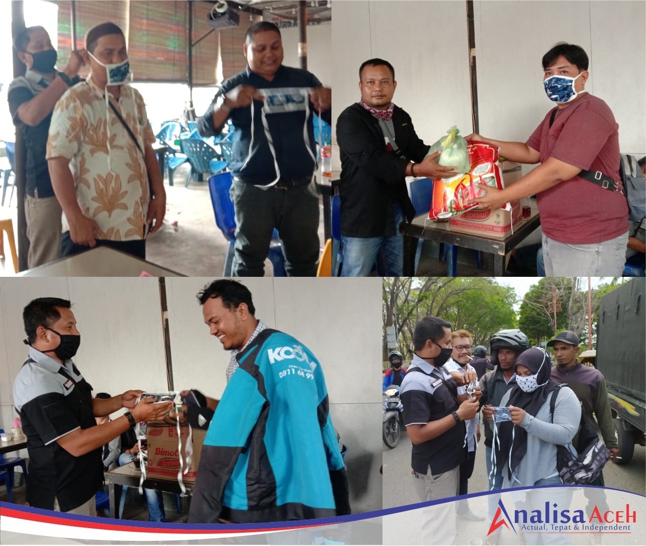 Analisaaceh.com, Lhokseumawe | Pengurus Persatuan Pewarta Warga Indonesia (PPWI) Kota Lhokseumawe membagikan masker kepada wartawan yang bertugas di wilayah Aceh Utara dan Lhokseumawe dan kepada pengguna jalan, Kamis sore (9/4/20). Sebagian pewarta juga mendapat bantuan berupa bahan pokok donasi dari Senator Aceh, Fachrul Razi, MIP.