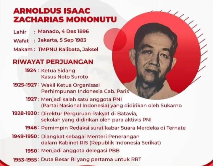 Arnold Mononutu telah terlibat aktif dalam dunia pergerakan nasional dengan misi memperjuangkan kemerdekaan Indonesia.