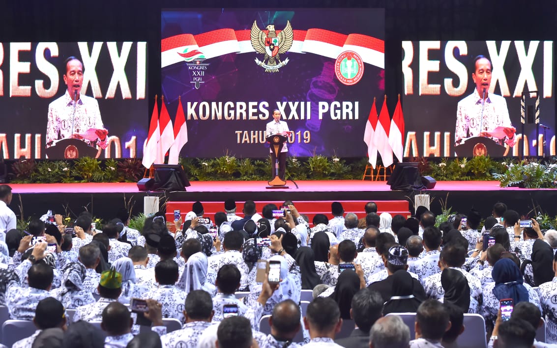 Hal tersebut disampaikan Presiden Joko Widodo dalam sambutannya saat membuka Kongres XXII Persatuan Guru Republik Indonesia (PGRI) – Kongres Guru Indonesia Tahun 2019 di Britama Arena, Kelapa Gading, Jakarta Utara, Jumat, 5 Juli 2019.