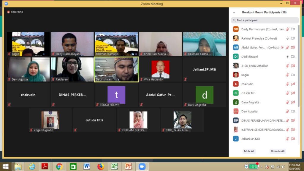 Analisaaceh.com, Meulaboh | Program Studi Agrobisnis Fakultas Pertanian Universitas Teuku Umar (UTU) menggelar kegiatan Fokus Group Discution (FGD) penyusunan kurikulum kampus merdeka dan merdeka belajar dngan menggunakan media Daring pada Kamis (08/10/2020).