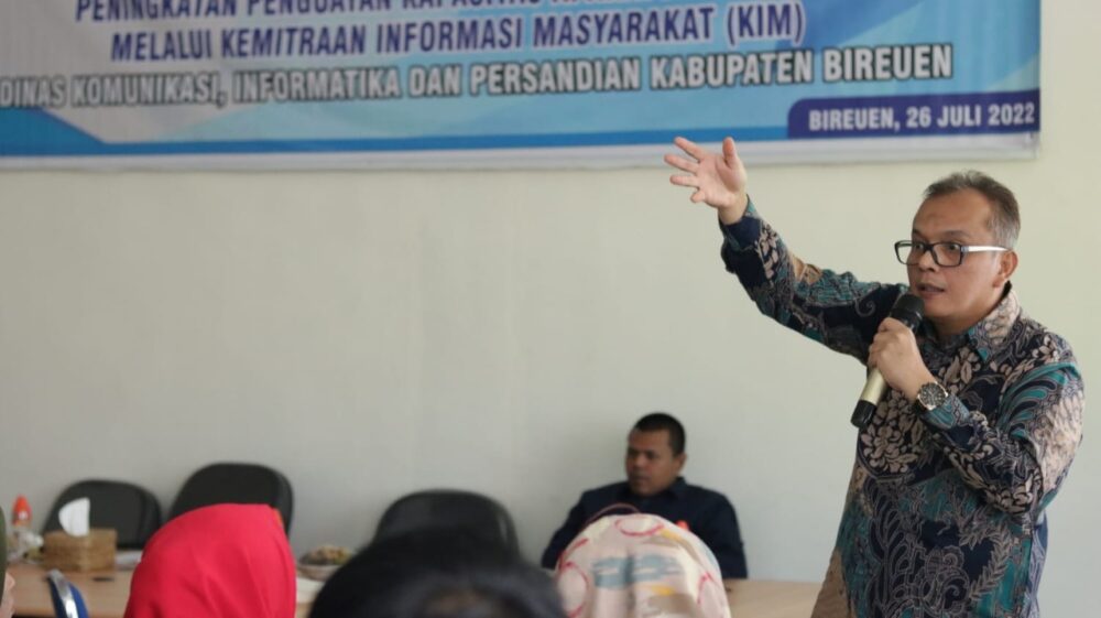 Demikian disampaikan Kepala Bidang Pengelolaan Komunikasi Publik Diskominsa Aceh, Alfajrian AB, SE, MM dalam Pelatihan Peningkatan Penguatan Kapasitas Aparatur Gampong Melalui Kemitraan Informasi Masyarakat (KIM) yang berlangsung di Aula Kantor Diskominfo Kabupaten Bireuen, Selasa (26/7/2022).