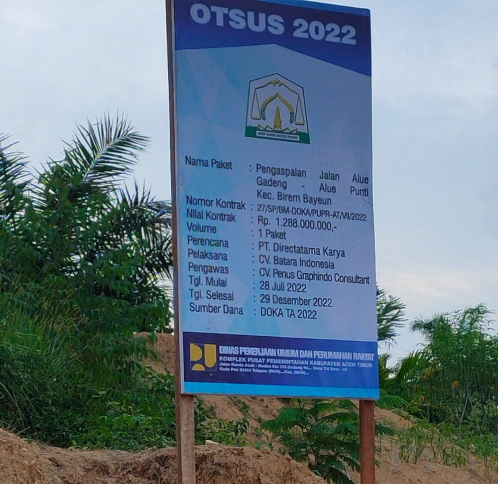 Analisaaceh.com, Idi | Warga Kecamatan Birem Bayeun Kabupaten Aceh Timur mempertanyakan proyek pengaspalan jalan Alue Gadeng – Alue Punti yang tak kunjung dikerjakan, padahal pembangunan dengan anggaran Rp1,2 miliar lebih itu hanya tersisa waktu 43 hari.