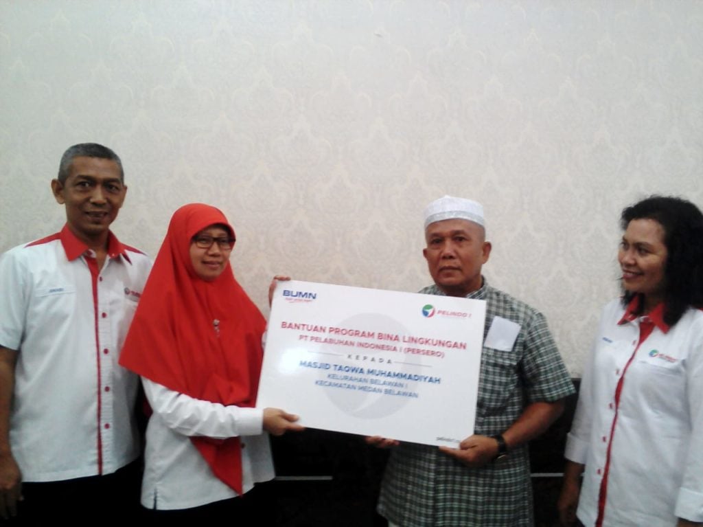 Untuk penyerahan bantuan Program Bina Lingkungan secara simbolis diserahkan untuk renovasi Pembangunan Masjid Taqwa Muhammadiyah Belawan sebesar Rp 30 juta, bantuan pengembangan sarana dan prasarana MI Swasta Al Washliyah 6 Belawan sebesar Rp 19 juta, bantuan pengadaan sarana dan prasarana PAUD Afifah Zein Medan Labuhan sebesar Rp 20 juta, dan renovasi SMP Swasta Nurani Belawan sebesar Rp 20 juta.