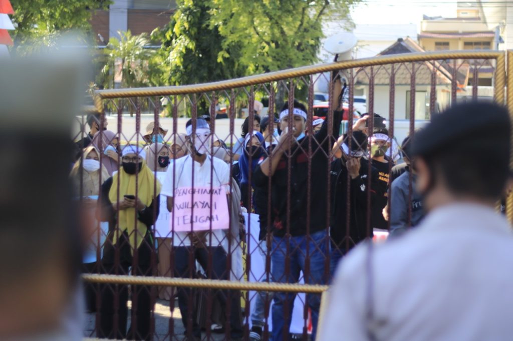 Analisaaceh.com, Banda Aceh | Puluhan masa yang tergabung dalam Aliansi Pemuda Wilayah Tengah (APAH) melakukan aksi demo saat berlangsungnya rapat paripurna DPRA, di kantor DPR Aceh, Jumat (25/9/2020).