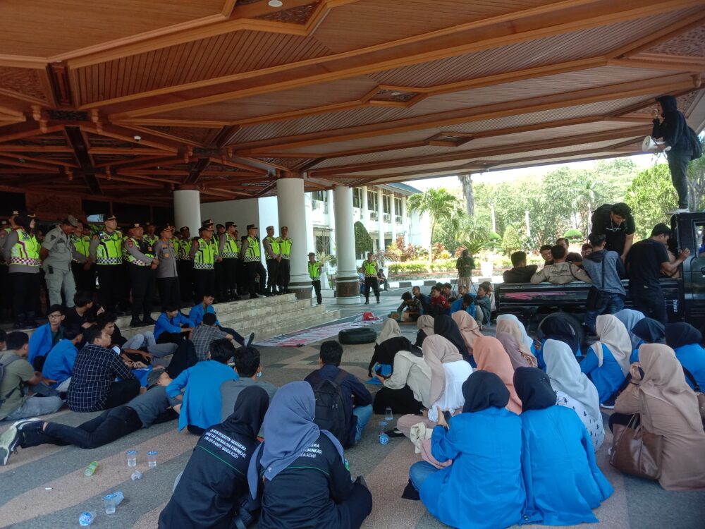 Dalam amatan analisaaceh.com, massa yang terdiri dari mahasiswa ini terlihat duduk kelelahan di depan teras gedung utama kantor Gubernur Aceh.