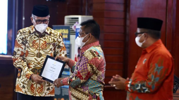 Secara simbolis, Gubernur Aceh menyerahkan secara langsung anugerah tersebut kepada Wali Kota Banda Aceh Aminullah Usman dan Bupati Aceh Ramli MS yang menghadiri langsung peringatan HAN tahun 2021, di Anjong Mon Mata.
