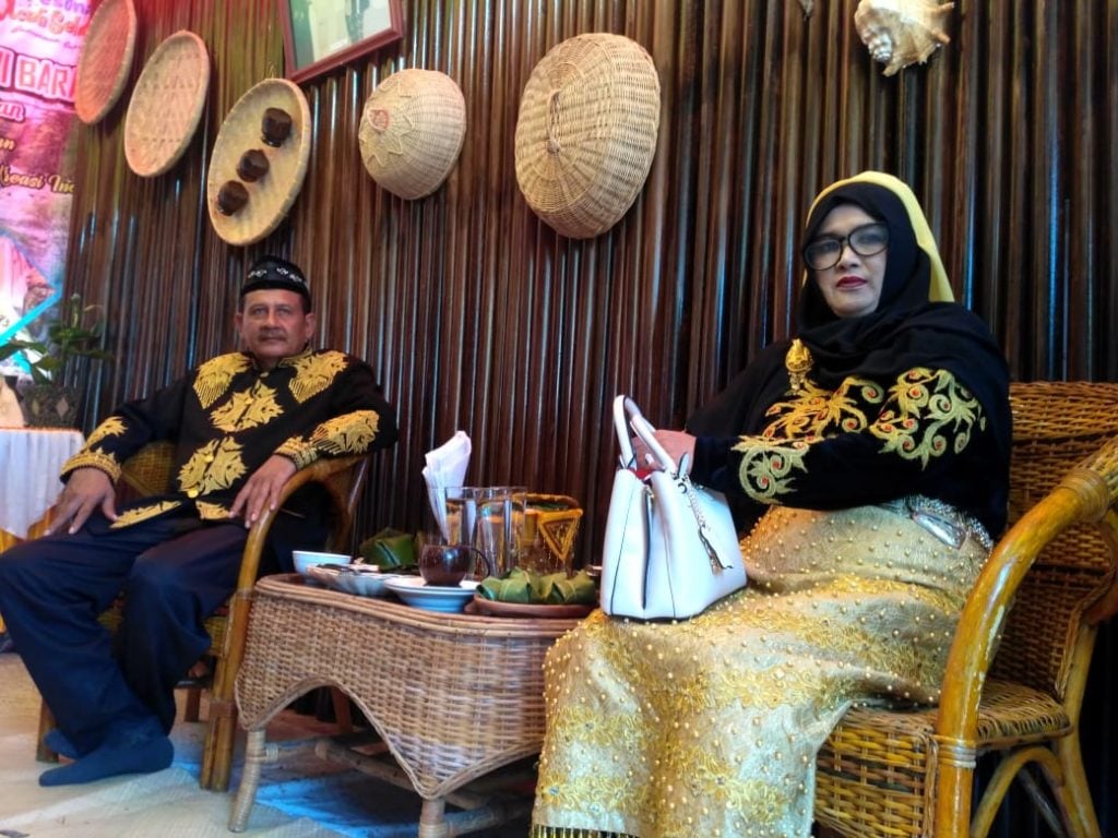 Camat Labuhanhaji Barat Said Suhardi dan Istri Hj. Ernawati dalam stand Labuhanhaji Barat pada kegiatan Festival Perdana Pesona Aceh Selatan dan Jambore PKK tahun 2019, di Lapangan Naga Tapaktuan. (Photo : NB)