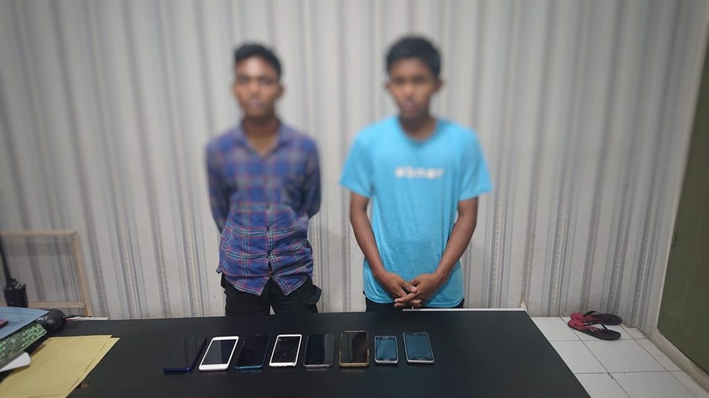 Kedua tersangka berinisial Y (19) mahasiswa salah satu perguruan tinggi dan A (20) berprofesi tukang tempel ban ini diamankan karena merampas Handphone milik Muhil (14) remaja asal Ulee Kareng pada Minggu 16 Januari 2022.