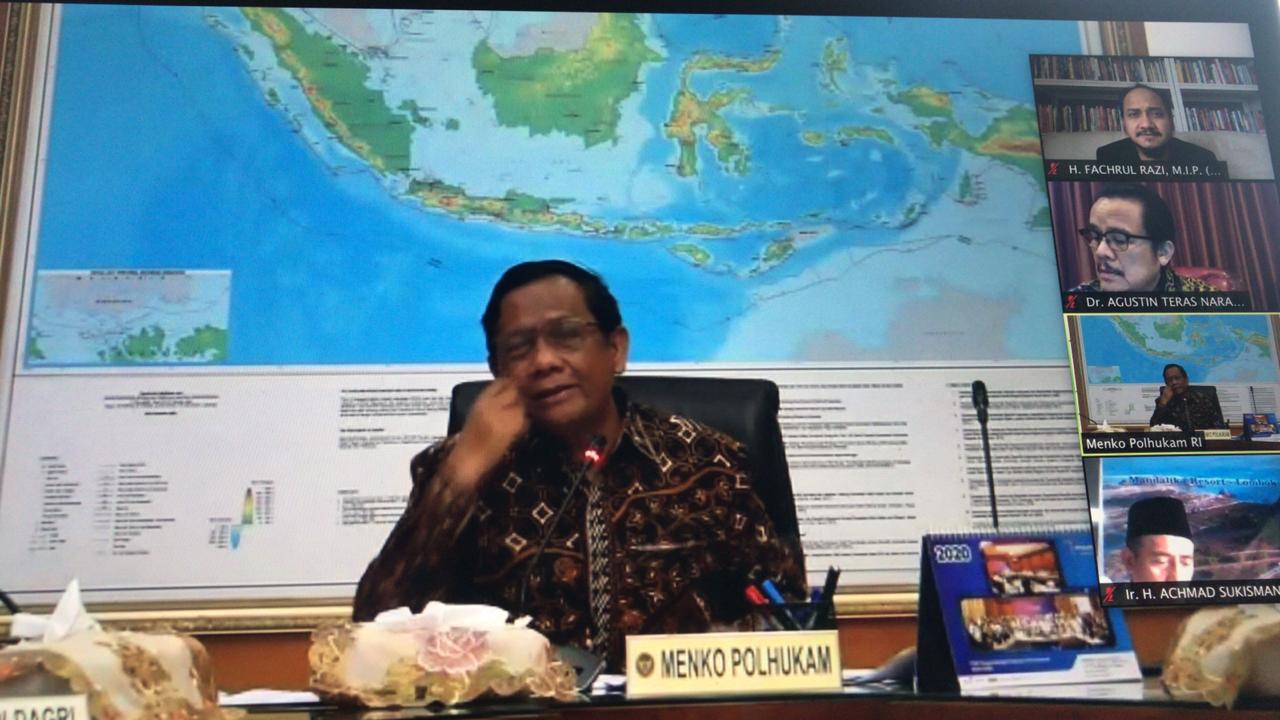 Analisaaceh.com | Senator Aceh H. Fachrul Razi, MIP yang juga Wakil Ketua Komite I DPD RI melalui Komite I DPD RI menggelar Rapat Kerja Online dengan Menteri Koordinator Politik Hukum dan Keamanan (Menko Polhukam) Prof Mahfud MD, pada Jumat siang (8/5). Rapat yang berlangsung dari Pukul 13.00 hingga pukul 16.30 membahas persoalan situasi politik, hukum dan keamanan pemerintahan.