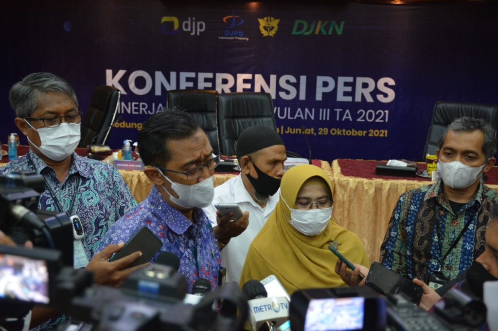 Analisaaceh.com, Banda Aceh – Kanwil Direktorat Jenderal Pajak (DJP) Aceh mencatat, sampai dengan bulan September 2021, realisasi perpajakan di Aceh adalah sebesar Rp2,604 triliun atau 53,66% dari target penerimaannya. Hal itu disampaikan Kepala Bagian Umum Kanwil DJP Aceh, Gunawan Agung Waskito, dalam Konferensi Pers Kinerja Ekonomi Triwulan III Perwakilan Kementerian Keuangan RI Provinsi Aceh, Jumat 29/10/2021.